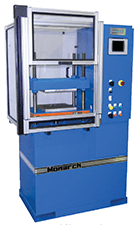This Monarch Series press meets the critical demands of ISO 13503-2:2006 with unsurpassed cycle repeatability. The proportional hydraulic system is capable of applying a constant rate of 13.8 MPa/min. (2000 PSI min.) from 2 ton to 28 ton clamp force within a ±2.5% deviation. The operator interface allows easy setup of press control parameters and includes ample recipe storage.